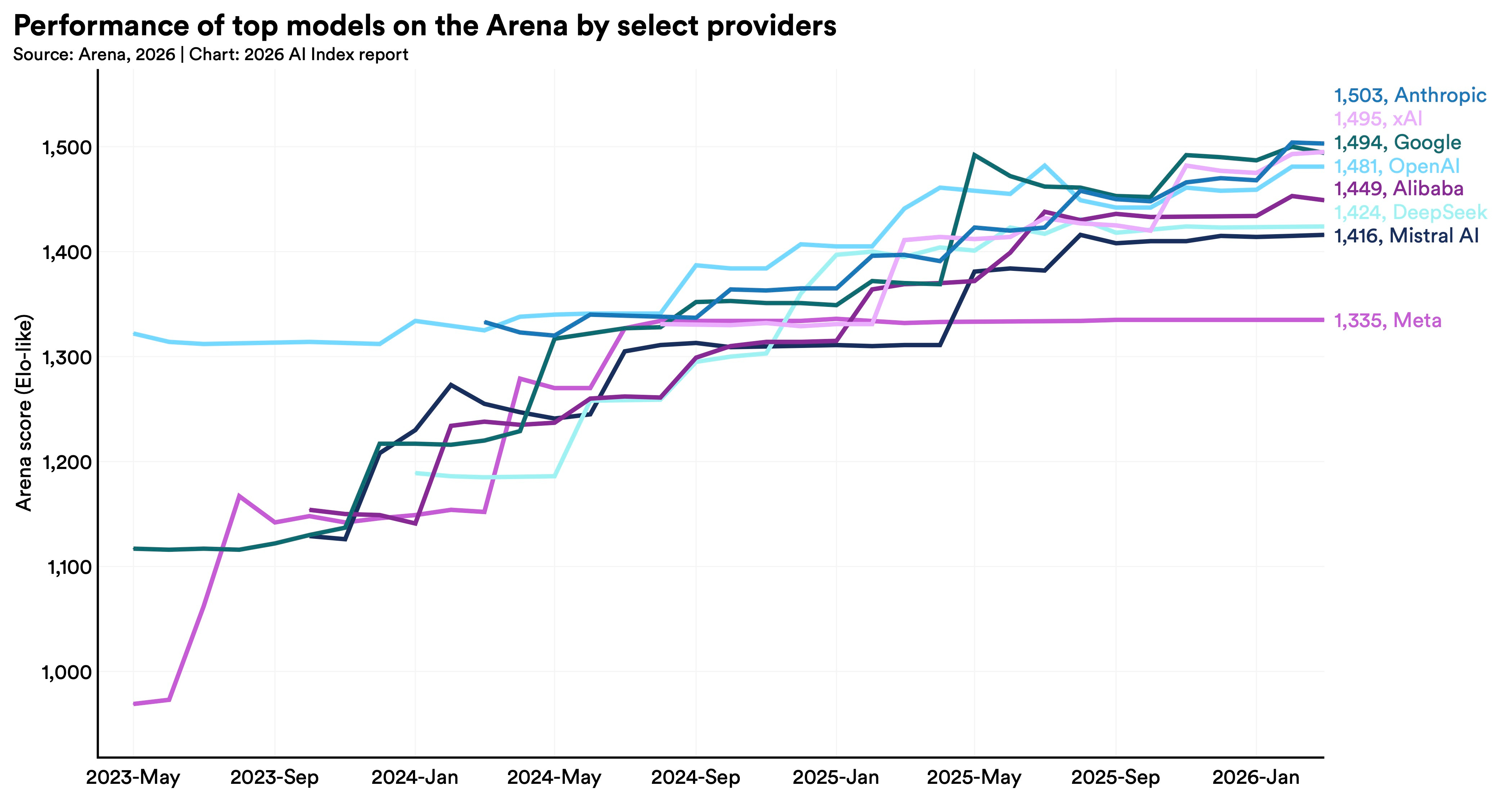 Despite predictions that AI development may hit a wall, the report says that the top models just keep getting better. People are adopting AI faster than they picked up the personal computer or the internet. AI companies are generating revenue faster than companies in any previous technology boom, but they’re also spending hundreds of billions of dollars on data centers and chips. The benchmarks designed to measure AI, the policies meant to govern it, and the job market are struggling to keep up. AI is sprinting, and the rest of us are trying to find our shoes.